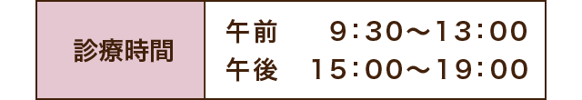 | 診療時間 | 午前 9:30〜13:00 午後 15:00〜19:00 |