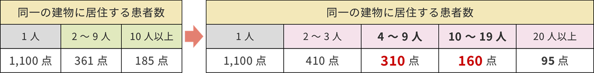 従来まで、介護施設で10人/日以上診ていた歯科医院は、診療報酬改定により収益効率に大きな影響を与えることになりました。