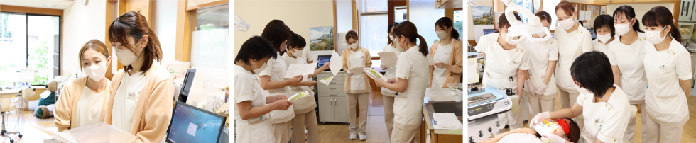 ブランクがある方や新人から勤めている衛生士さんも、きちんと指導しますので安心!!